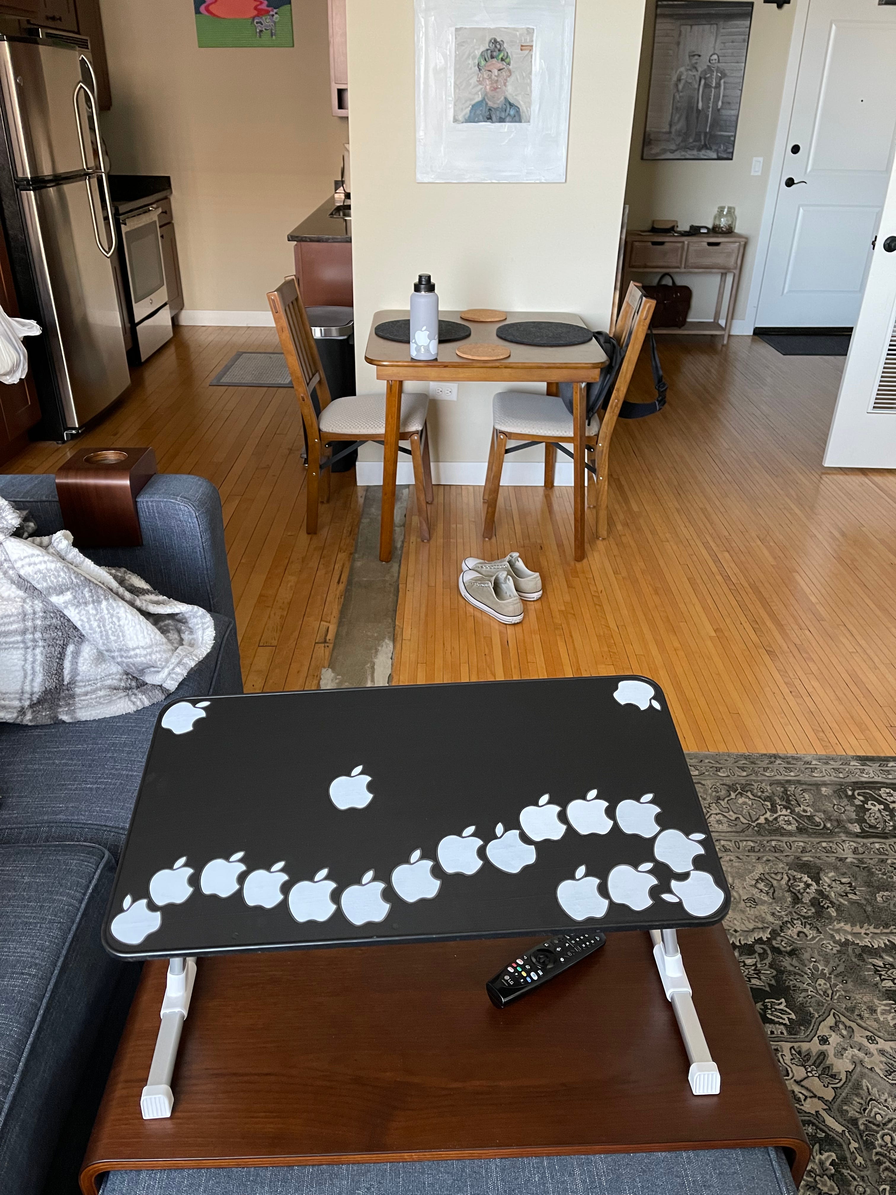 A little background on this person so you completely understand. We came from a time where apple products were scarce and only the artsy professionals used them. (which she was one) In the late 90s an Apple sticker meant that you were a member of the Cool Cats Club and she coveted them as if they were sacred. I was once involuntarily involved in a three week debate about placing one on something in her workspace. I didn’t really give a shit because it was a sticker and she ultimately decided against the waste because neither of us loved the company we worked for.